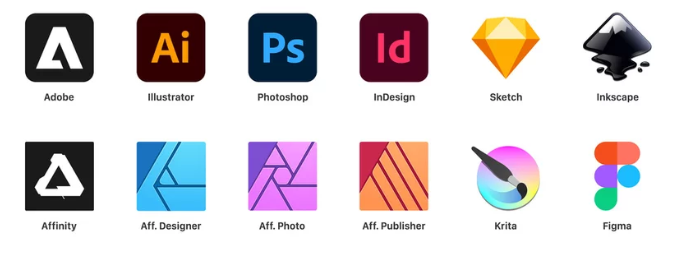Logiciels de PAO (Adobe, Affinity Designer…) ;
